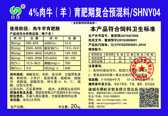 上一條:5%肉牛(羊)育肥期復(fù)合預(yù)混料-SHNY05